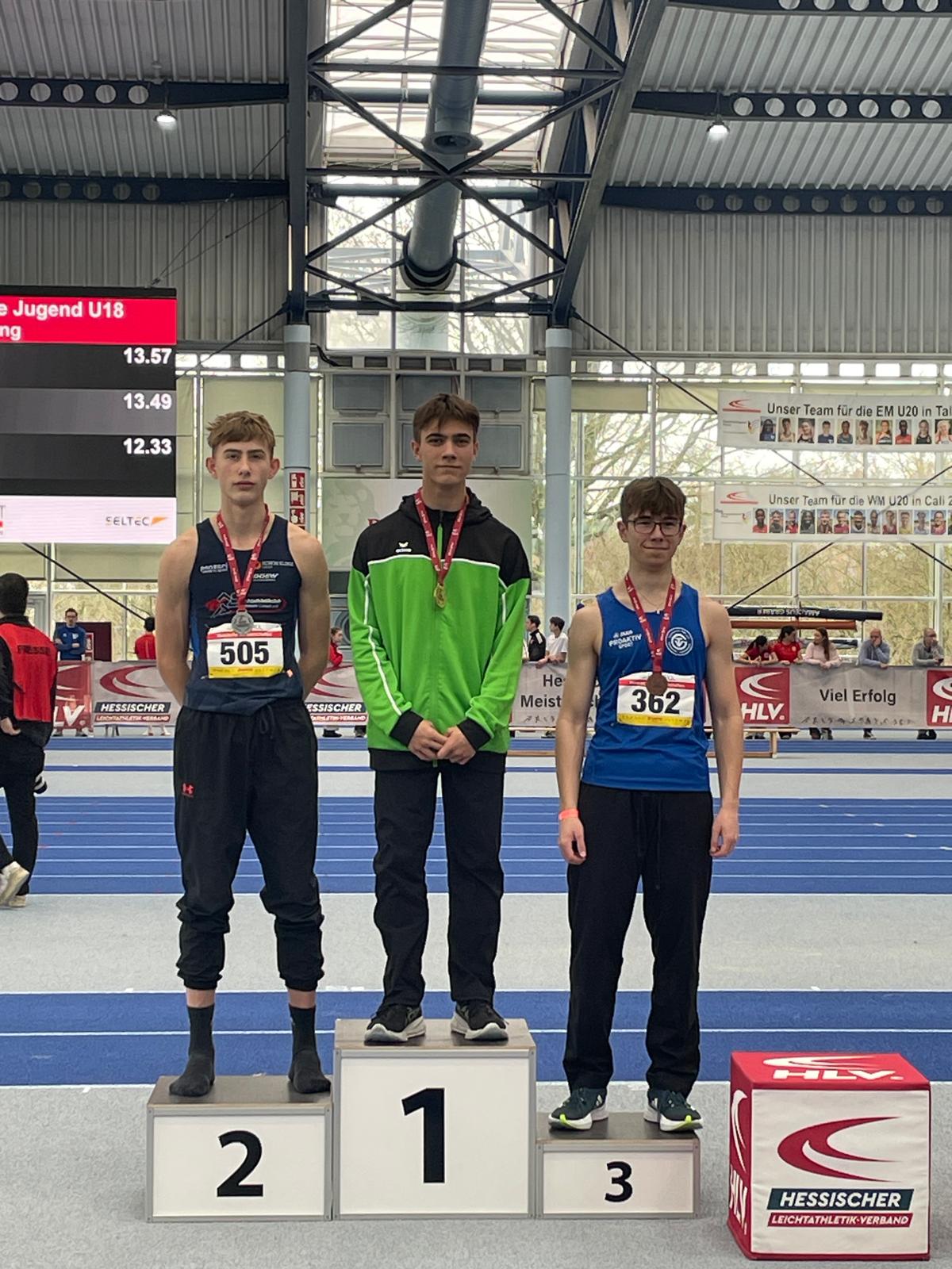 Bei den Hessischen Hallenmeisterschaften im Dreisprung der U18, ausgetragen am 31.01.26, setzte sich Felix Remmele durch und errang mit einer Weite von 13,57 m den Hessenmeistertitel.